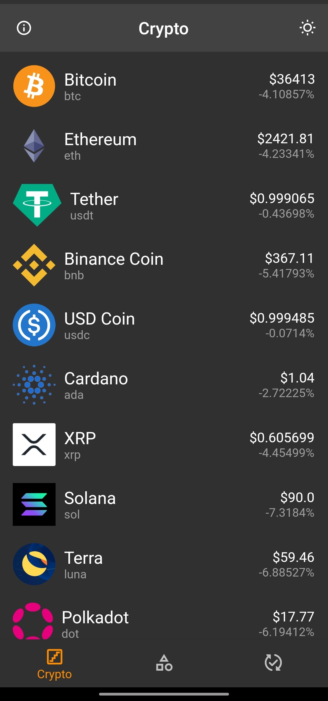 This app is cryptocurrency application developed by using flutter. In this app, you can see information about crypto coins and cryptocurrency price and exchanges. The data will be updated every second. You can see latest cryptocurrency price and information.