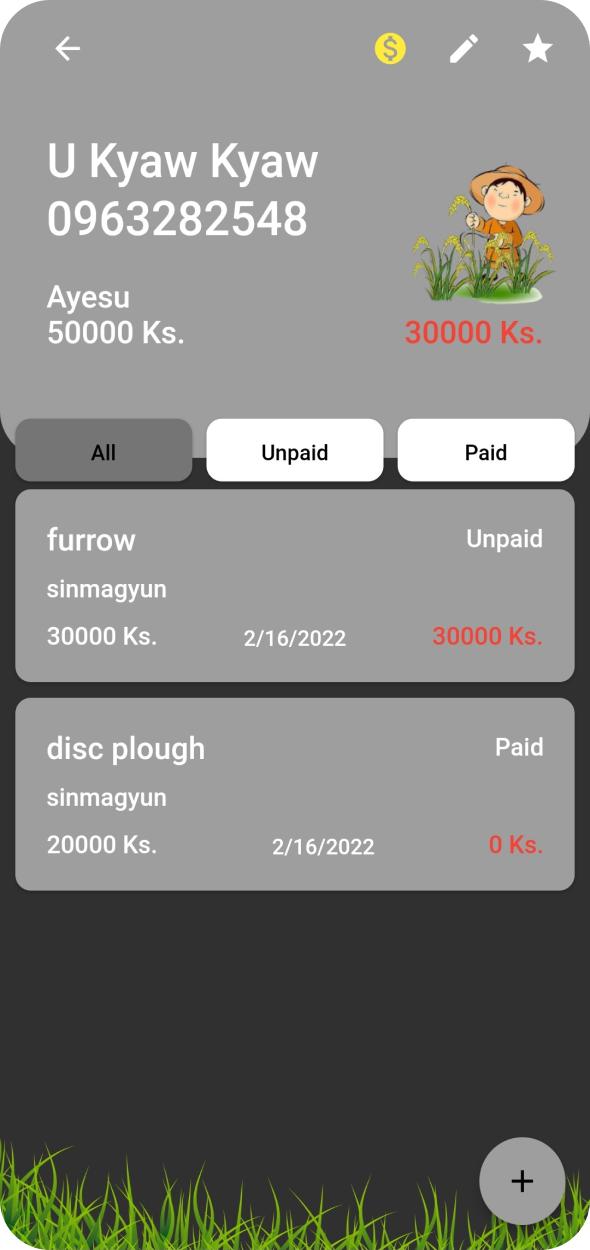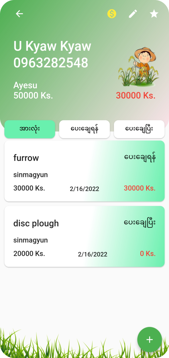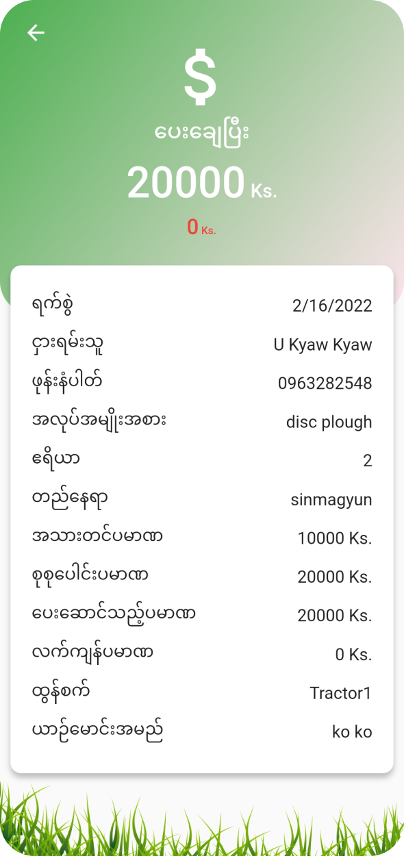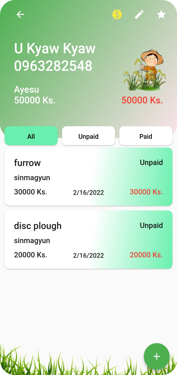 This application was developed for my father who is farmer. He do renting tractor service and he want to record rental history and need to remember to get rental fee. So I had an idea to developed this app. In this app, I'm using firestore for data storage and it make to sync data between users such as owner, driver and who collect rental fee.